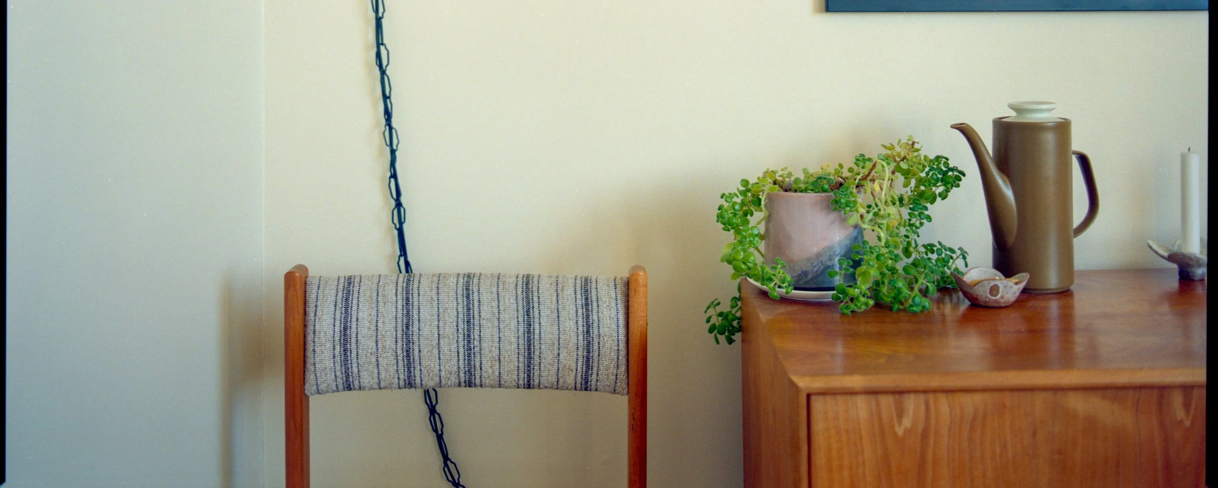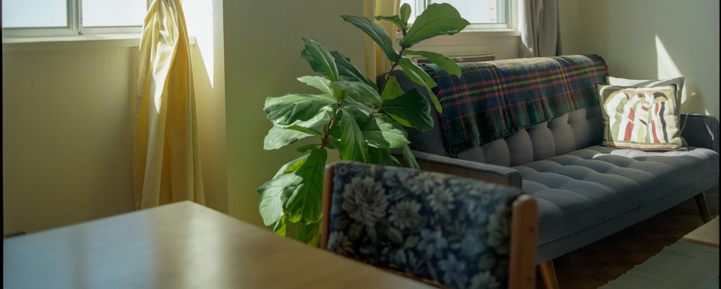 This encounter became a framework for this body of work. I photograph the homes of people in my community–friends, colleagues, neighbours– who I admire and who reflect a perceived sense of stability and access that I desire and question. I use a medium-format film camera to work slowly and intentionally. The act of documentation becomes a sacred and ritualistic engagement with real and imagined memories, histories, routines, and meanings embedded within the space. The work requires me to sit with my own envy. By creating subtle interventions by way of framing, cropping and object placement I aim to reflect the dualities embedded in the work and in daily life: belonging and exclusion, stability and precarity, privacy and performance.