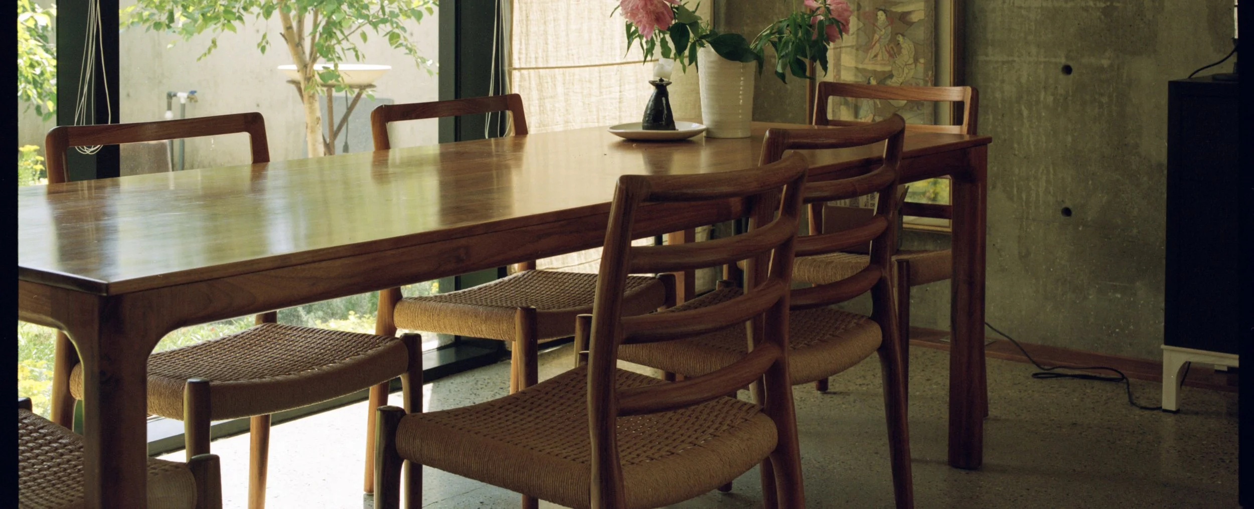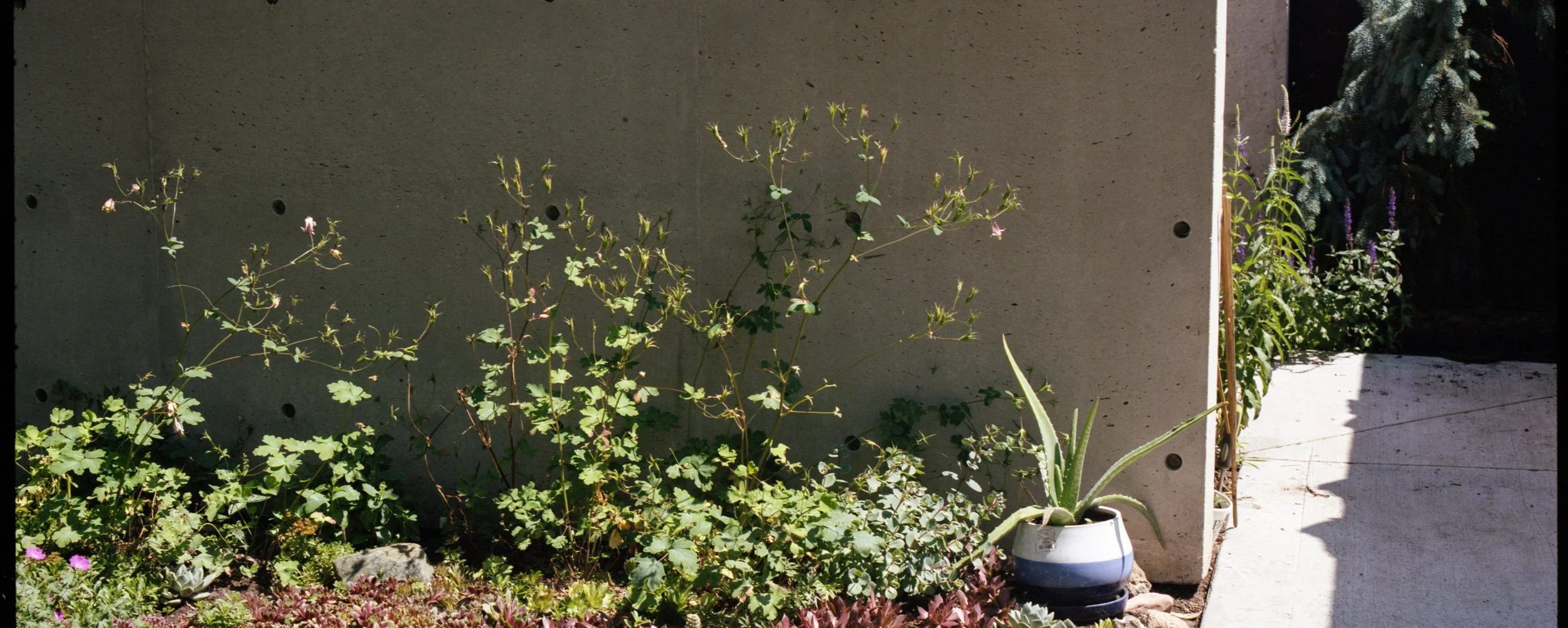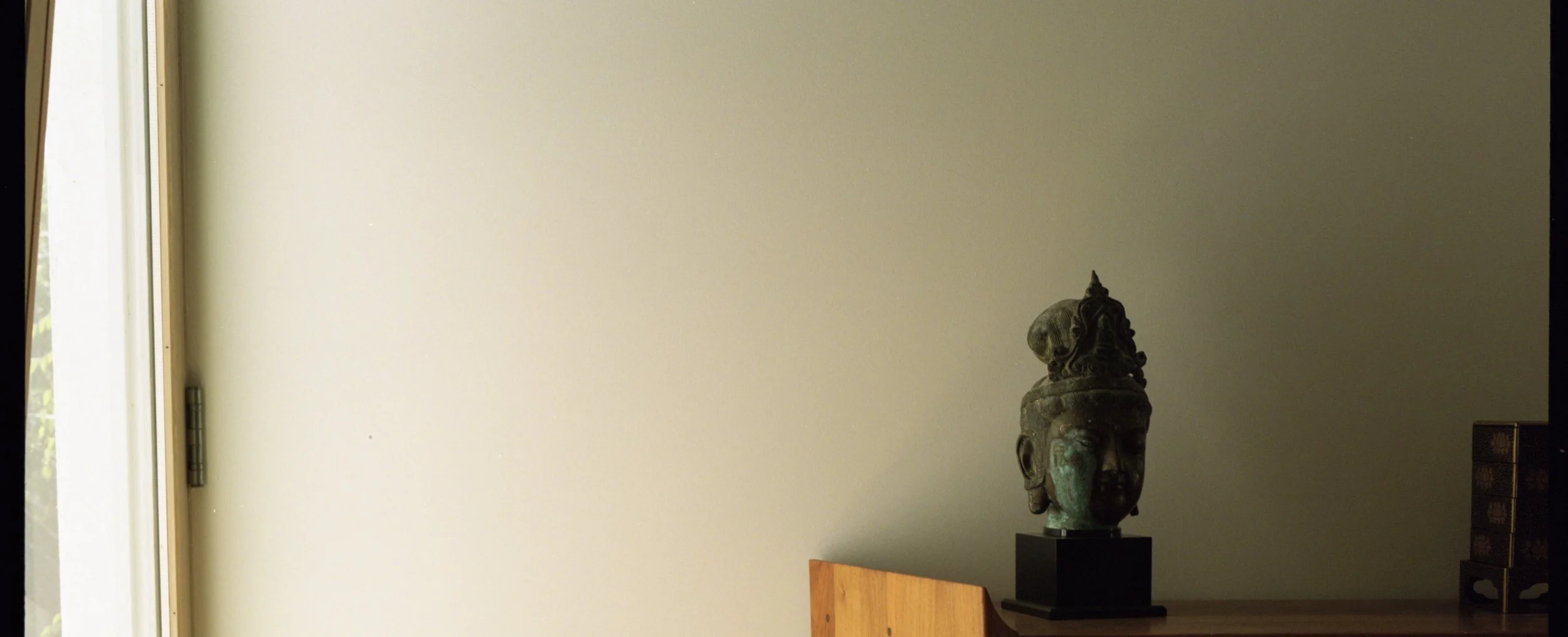 One afternoon two summers ago, I walked by an overgrown suburban garden that grabbed my attention. The wild garden seemed a puzzling and poignant contrast to the home’s rigid concrete structure, reminiscent of post-war Brutalist architecture. The homeowners invited me to photograph the interior and exterior of the home. Walking through the home felt indulgent, like perusing the pages of a Home & Garden spread: beautiful, unfamiliar, pristine. The curated objects and immaculate interiors raised questions not only about unveiling private life, but also my relationship to spaces that represent wealth and class. I found myself contending with my place within these value systems, feeling drawn to their allure while disconnected from them. Despite my ambivalence, if I could live in that house, I would.